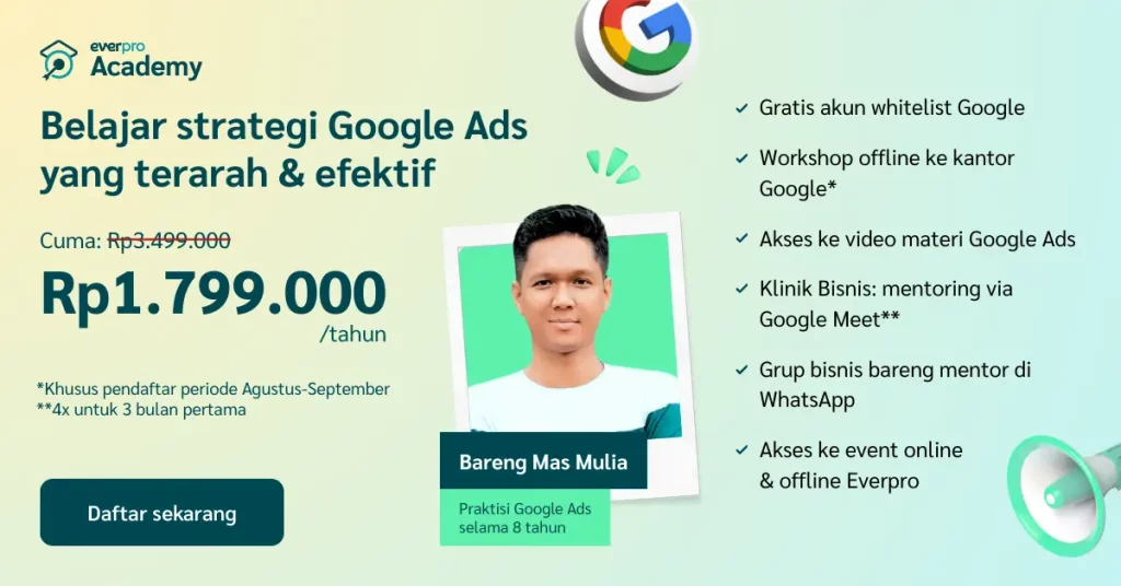 - Akses ke video materi Google Ads selama 1 tahun